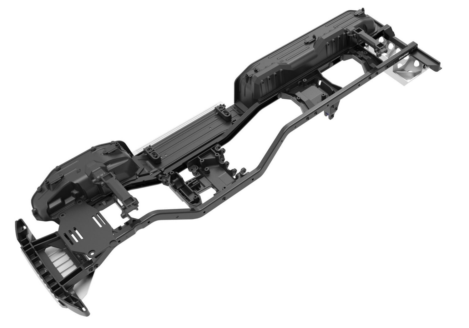 Designed exclusively for the TRX-6 Mercedes-Benz G 63 AMG 6×6, thick 1.5 mm steel frame rails are formed from one solid piece for maximum strength. Extra bracing and crossmembers provide exceptional torsional rigidity to resist chassis twist under load. Full inner fenders and accurately reproduced skidplates enhance the scale realism.
