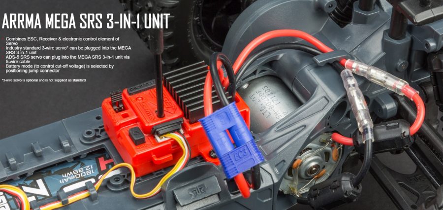 - MEGA SRS 3-in-1 Unit with ESC and receiver (EC3 connectors, IC3 compatible).