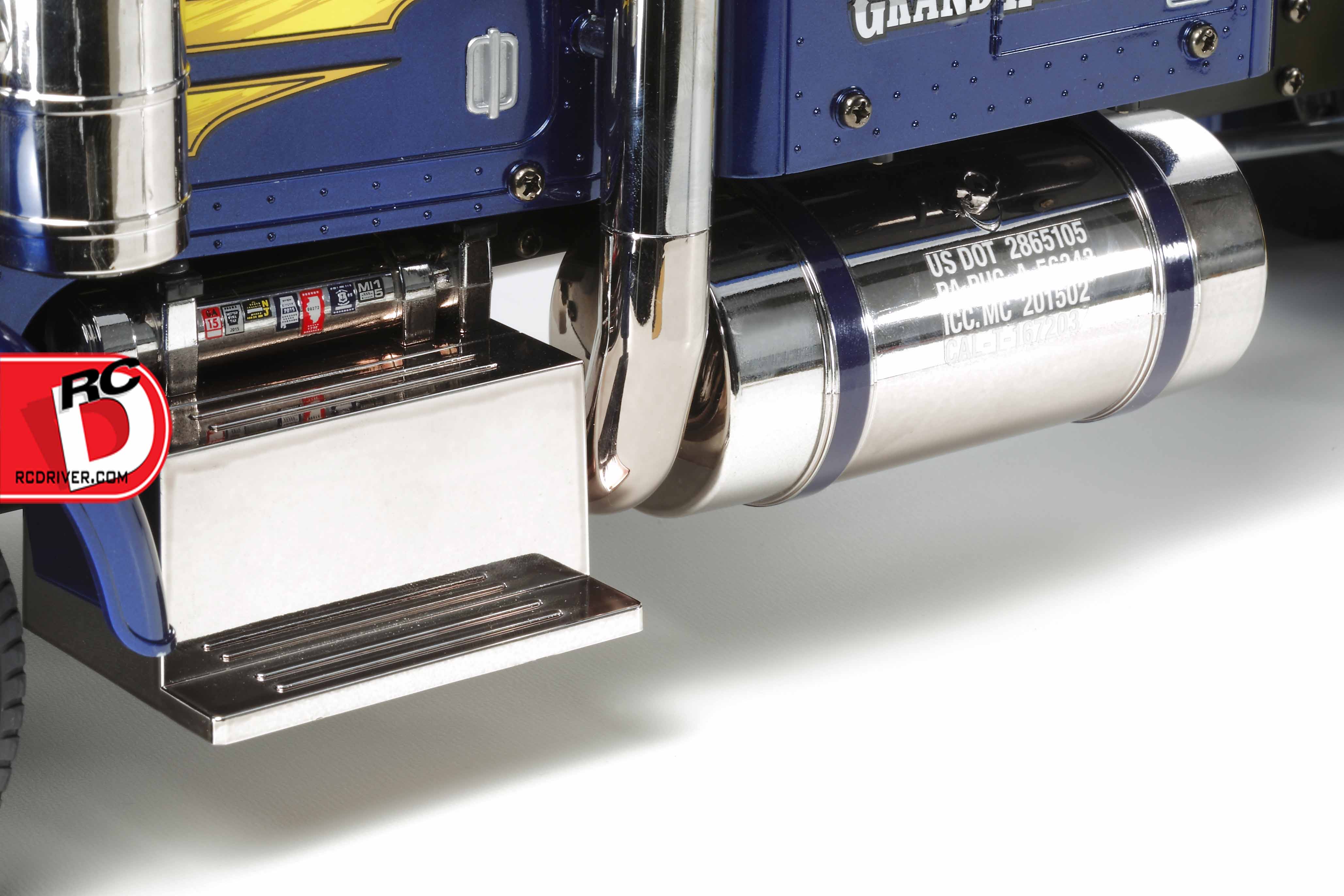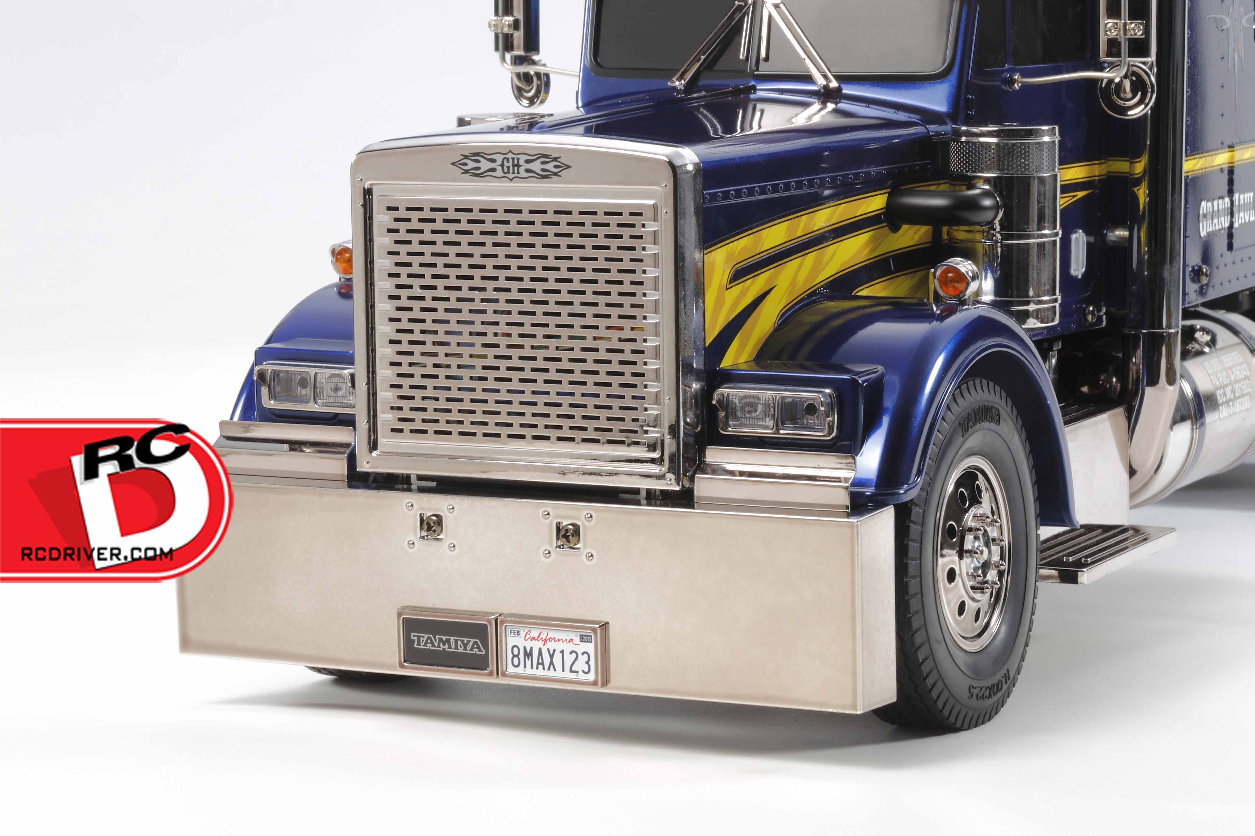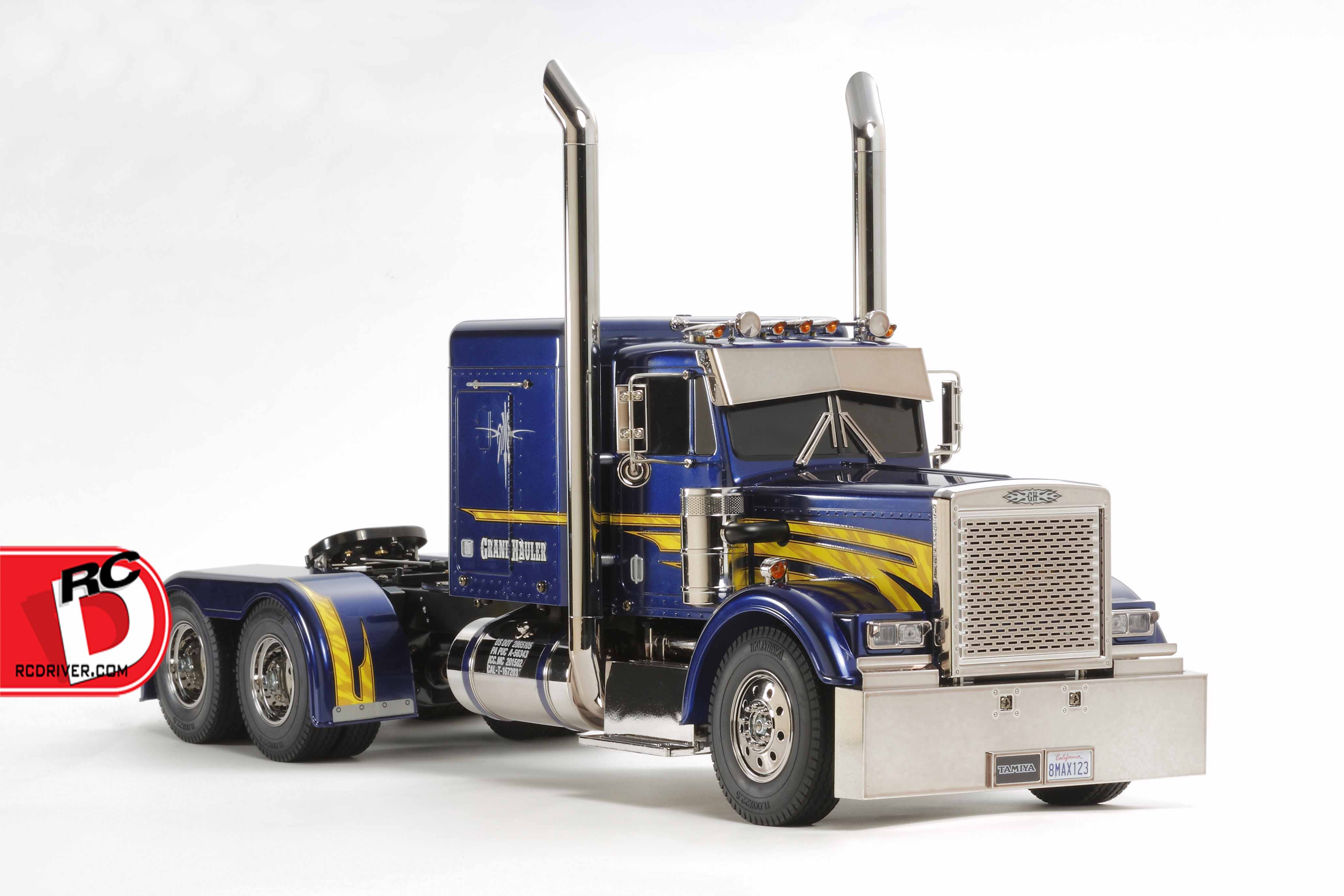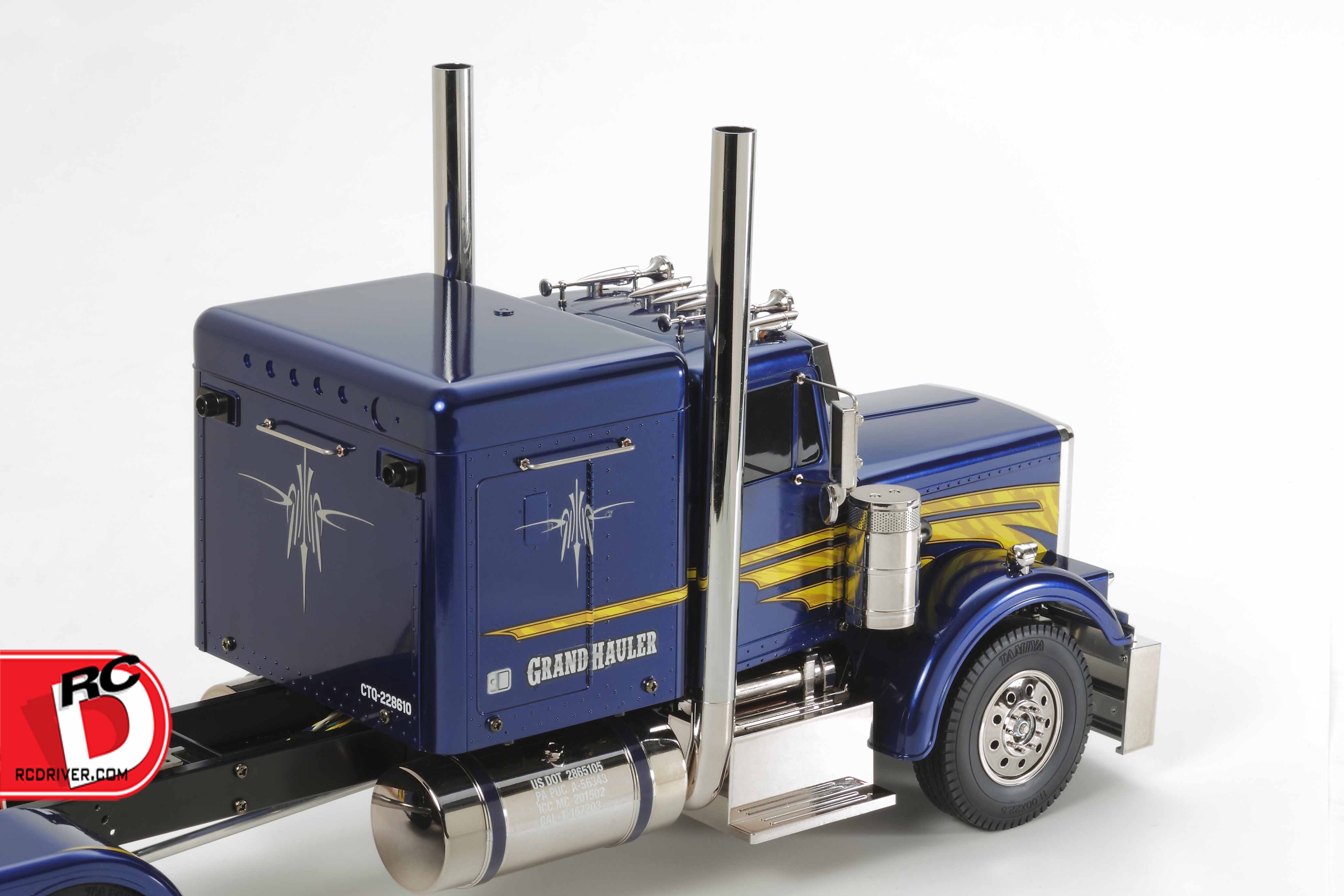Tamiya is back at it with another big rig tractor trailer hauler that you are going to want. The Tamiya Grand Hauler is extremely well detailed and loaded with features. This 1:14 kit features a 4-axle drivetrain with 3-speed transmission and live axle type differentials. It has leaf spring suspension, aluminum friction shocks. It comes with a 540 sized motor, full bearings and much more!