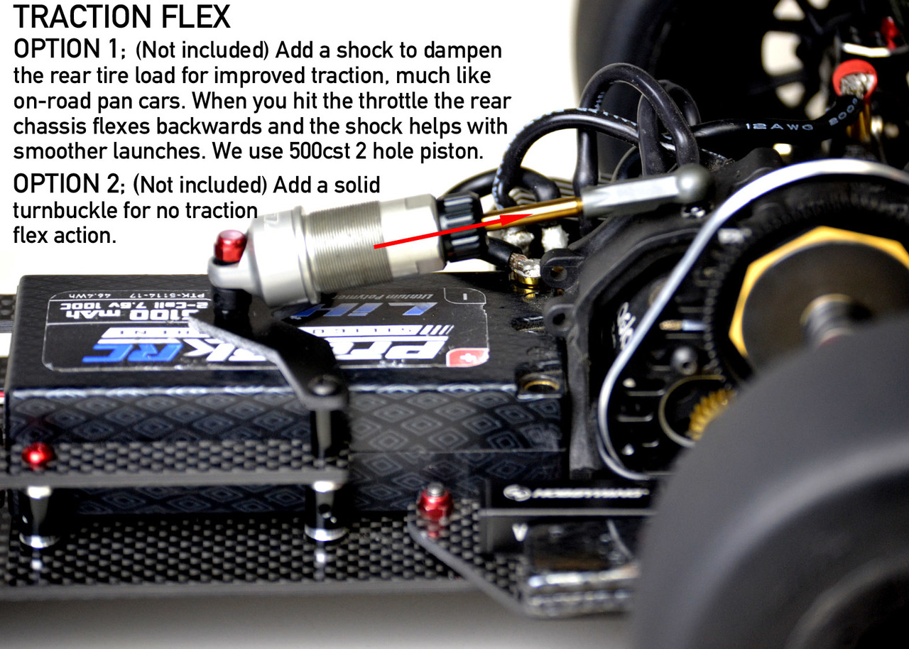 - 4 position shorty LiPo mounting to adjust for wheelie/ no wheelie balance