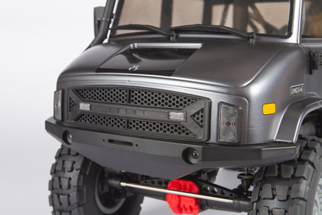 The realistic molded plastic grille features details such as a radiator, an embossed Axial logo, two clear marker lenses, and two headlight lenses. Additional scale details can be found throughout the body for an authentic military look.
