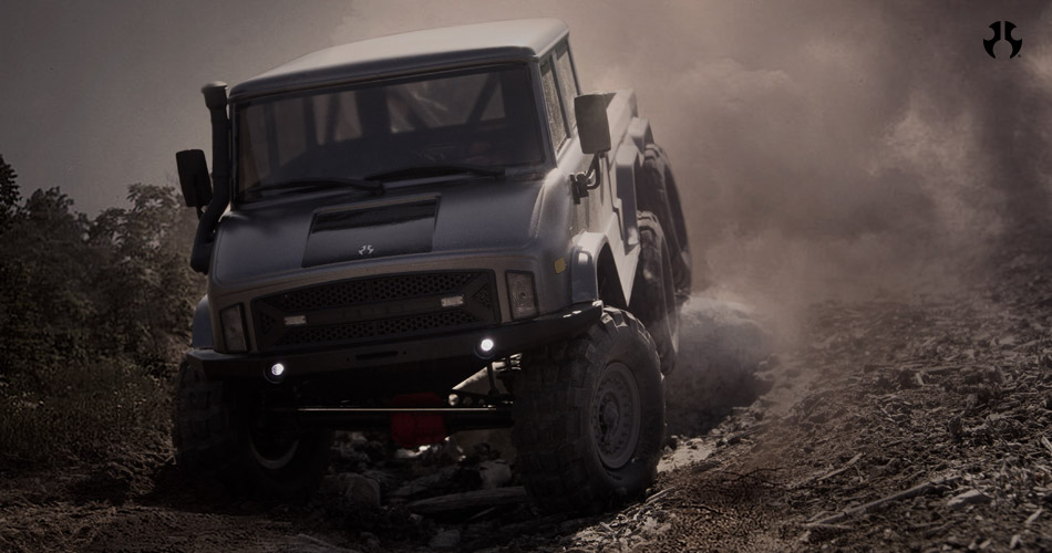 The ready-to-run Axial SCX10 II UMG10 6X6 delivers realistic performance with an authentic military feel — enhanced by this scale crew cab body with hinged rear cage for quick chassis access. The aggressive approach angle created by the vehicle’s front end design enables the UMG10 6X6 to take on steep inclines, and the long 17.3″ (439mm) wheelbase helps with agility in challenging terrain.