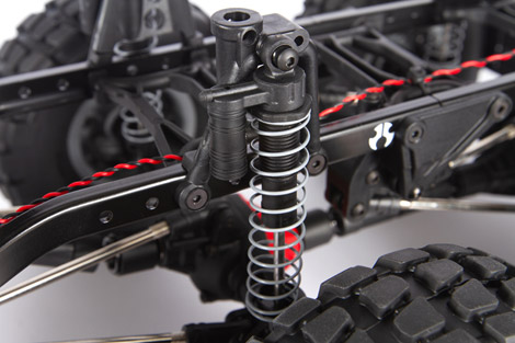 Made to tight tolerances, the included coilover shocks feature precision-machined pistons for smooth action throughout their range of travel, delivering the crawling performance you expect from an Axial vehicle.