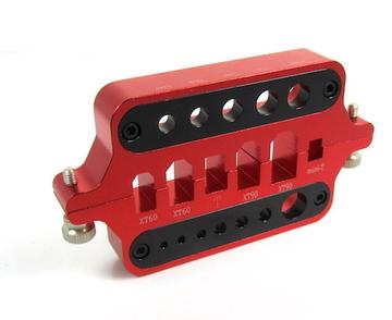 No more pleirs with rubber bands on them to clamp your connectors while you soder, TheToyz.com is proud to bring you this new Red Aluminum RC soldering Jig  for soldering bullet connectors, Deans plugs, XT60 and X90T Plugs.
