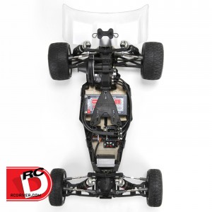 The wider, 2.5mm aluminum chassis and molded mud guards include the option to mount saddle and shorty Li-Po packs across the chassis. Shorty Li-Po packs can also be mounted fore to aft. This allows for more weight bias tuning front to rear and wider placement of battery weight. The result is a more stable buggy without an increase in static weight.