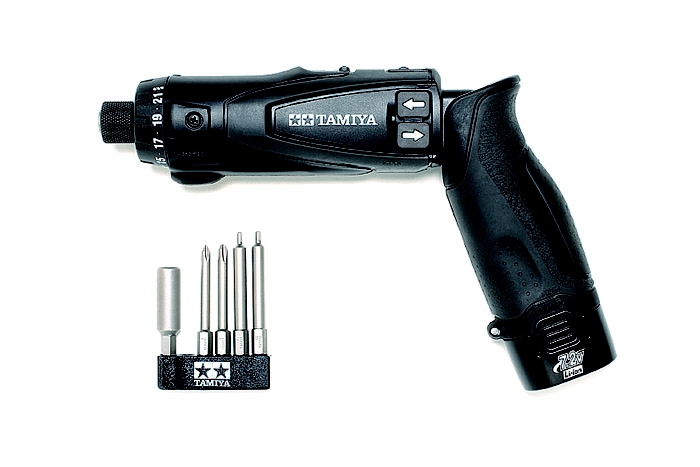 The information about this product was minimal on the Tamiya website, but we know what it is. It’s one of the most used products in RC, an electric driver. Many builders are turning from hand tools to electric drivers to help assemble and maintain their cars. This unit from Tamiya has an adjustble clutch, can screw in and unscrew hardware and it’s Li-Ion powered. It also appears to come with some 1/4-inch drive speed bits. The price was pretty hight for this item, but it will be worth it to the true Tamiya fan.
