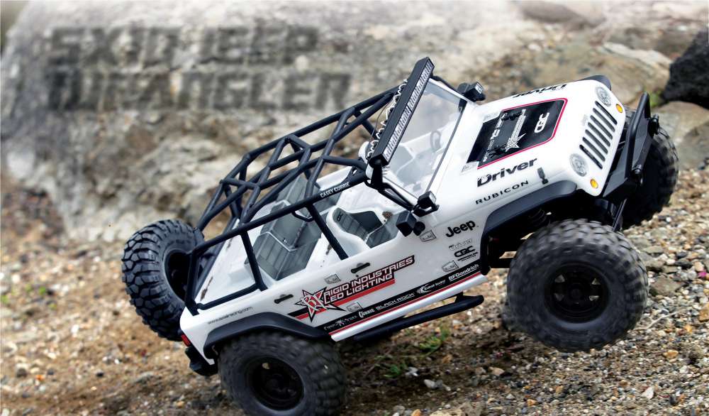 Perhaps you want to take things a bit slower but still want a cool truck loaded with features. Then you must take a long look at the SCX10 Jeep Wrangler Unlimited C/R Edition from Axial. Equipped with a 27-turn brushed motor and AE-2 ESC with ample drag brake, this scale truck will conquer the toughest trails with ease thanks in part to the metal frame chassis and WB8 Wild Boar driveshafts. This sharp looking RTR will run you about $409.99 and also features a TSX45 metal geared servo, fully licensed Poison Spyder Rock Brawler Bumper and Crusher Flares as well as CRC Edition Black Rock wheels. All of this, coupled with a light bar that allows for nighttime use, makes the SCX10 Jeep Wrangler Unlimited C/R Edition a winner from bumper to bumper.
