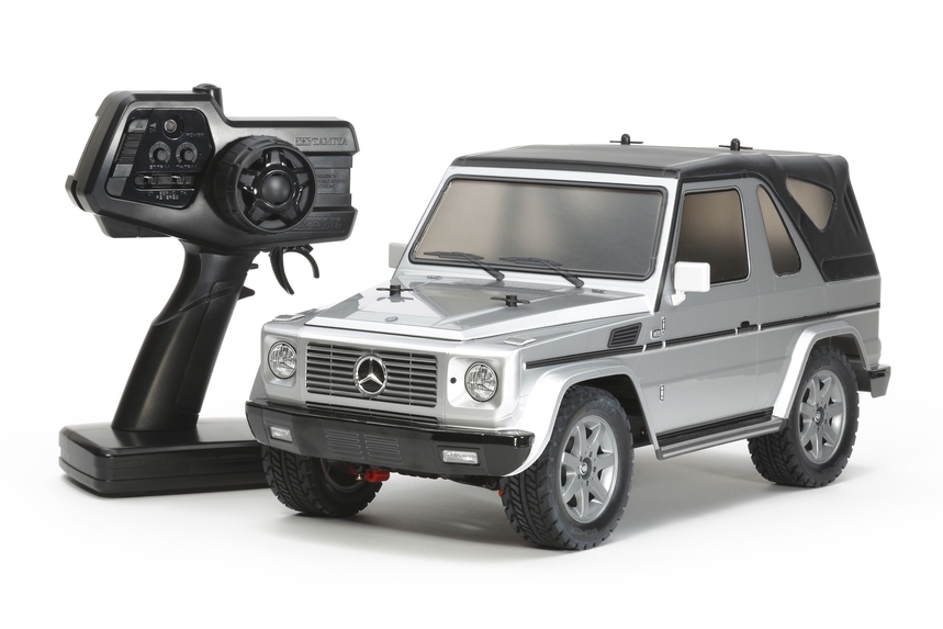 Here is another Mercedes-Benz but a sport utility vehicle as opposed to the Unimog work trucks mentioned above. The Mercedes-Benz G 320 Cabrio is a convertible version of its popular G class of vehicles. Tamiya nicely replicated the convertible top and painted it black to further highlight this feature. Instead of the CC-01 chassis, Tamiya placed the fun to drive and easy to maintain MF-01X chassis. This shaft driven 4WD monocoque chassis is equipped with 4-wheel independent, double-wishbone suspension supported by friction shocks. This is a great car for someone starting out due to its affordability and ease of maintenance.