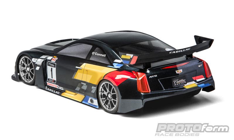 Thanks to PROTOform you can enjoy the success of the full-size ATS-V.R in 1/10-scale with this officially licensed clear body. With all the details accounted for and extensive sticker sheet, you can replicate a very realistic looking ATS-V.R thus compete in classes such as the USGT, GT10 and Spec Grand Touring. Genuine .030-inch polycarbonate is used to mold the body which includes the injection molded wing struts that will support the unique rear wing design. What makes this wing special is that it can be setup in two different variations. A 10mm vertical section for sanctioned USGT racing and a 20mm upper lad-back trim for club racing. The hardware is included to mount up the wing and overspray film comes on the body to help ensure a clean paint job.