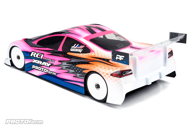 The tenth and final race-winning PROTOform touring car bodies is this Vittoria GT clear body. PROTOform created it for TC racers looking to compete in the scale-spec style classes such as USGT, GT10 or Spec Grand Touring. You can tell that the inspiration of the Vittoria was derived from the wave of hot Italian supercars that have been recently released. It has a low-CG cab forward design that not only looks great but will surely give exceptional handling characteristics out on the track. For USGT sanctioned races that require a lower wing position or for club racing where extra downforce is needed, PROTOform gives you two trimlines to get the wing in the proper position.