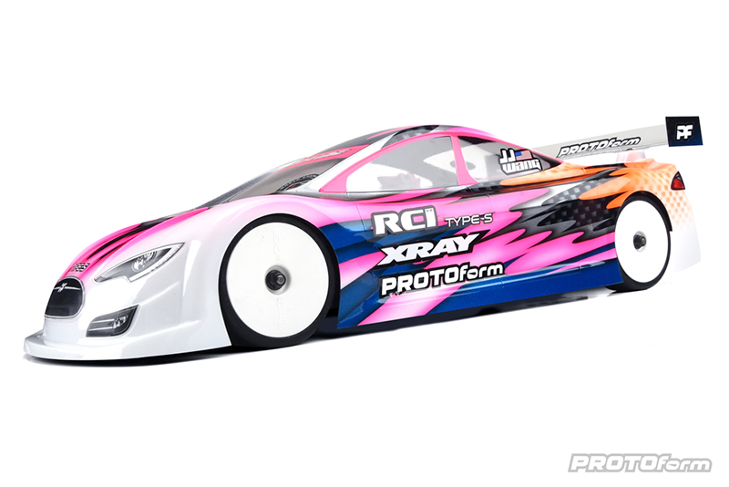 Like the Europa body, these Type-S bodies were created by PROTOform and are not copies of a full-size sedan. The Type-S Light Weight and Type-S PRO-Lite Weight clear bodies are high downforce racing bodies. They are ideal for modified classes or any other track condition and or class where more grip is required. You will find that these bodies offer super precise steering characteristics along with outstanding rear grip, the balance provided is unmatched by any other body on the 190mm electric touring car market. During testing by PROTOform’s team drivers, they discovered the Type-S hand no problem handling multiple racing surface types: ETS carpet, outdoor or indoor asphalt, or high-grip CRC black carpet.