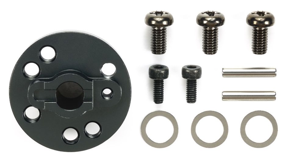 Yet another way to further increase the durability of the G 500 is with these CC-02 Aluminum Arm Pivots. These Aluminum Pivots replace the plastic ones that come with the kit and are the component where the suspension links attach to the chassis. The mounting screws will be less likely to come loose following hard impacts. Each pivot is beautifully CNC machined out of aluminum and then anodized in a sharp-looking gun metal color. Two sets are needed to outfit the chassis and don’t worry about the hardware because Tamiya includes it with this hop-up option part.