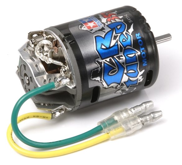 A great option is the Tamiya CR Tuned Motor which produces more torque than the stock motor. The added torque translates into more control over you G 500. It is a 35-turn brushed motor that will work with the stock speed control. As a side benefit, the motor looks color installed on the chassis as opposed to the plain silver can motor.