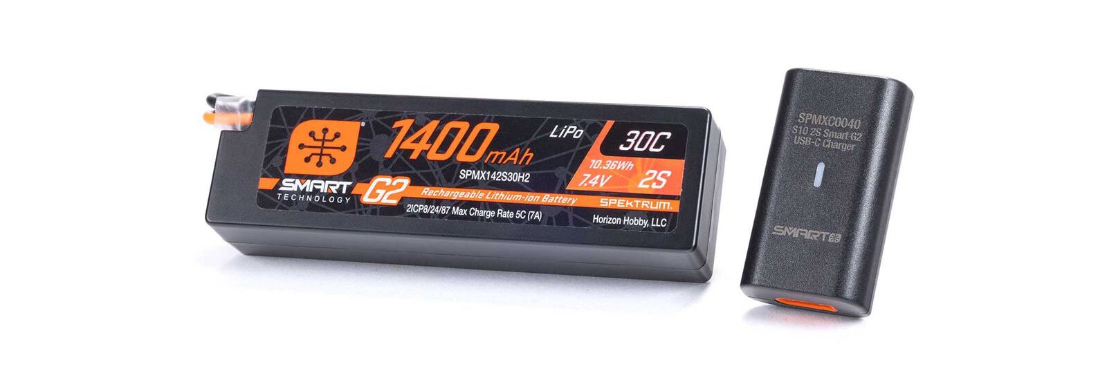 - Powerful Spektrum 2S LiPo battery and safe, easy-to-use Smart charger