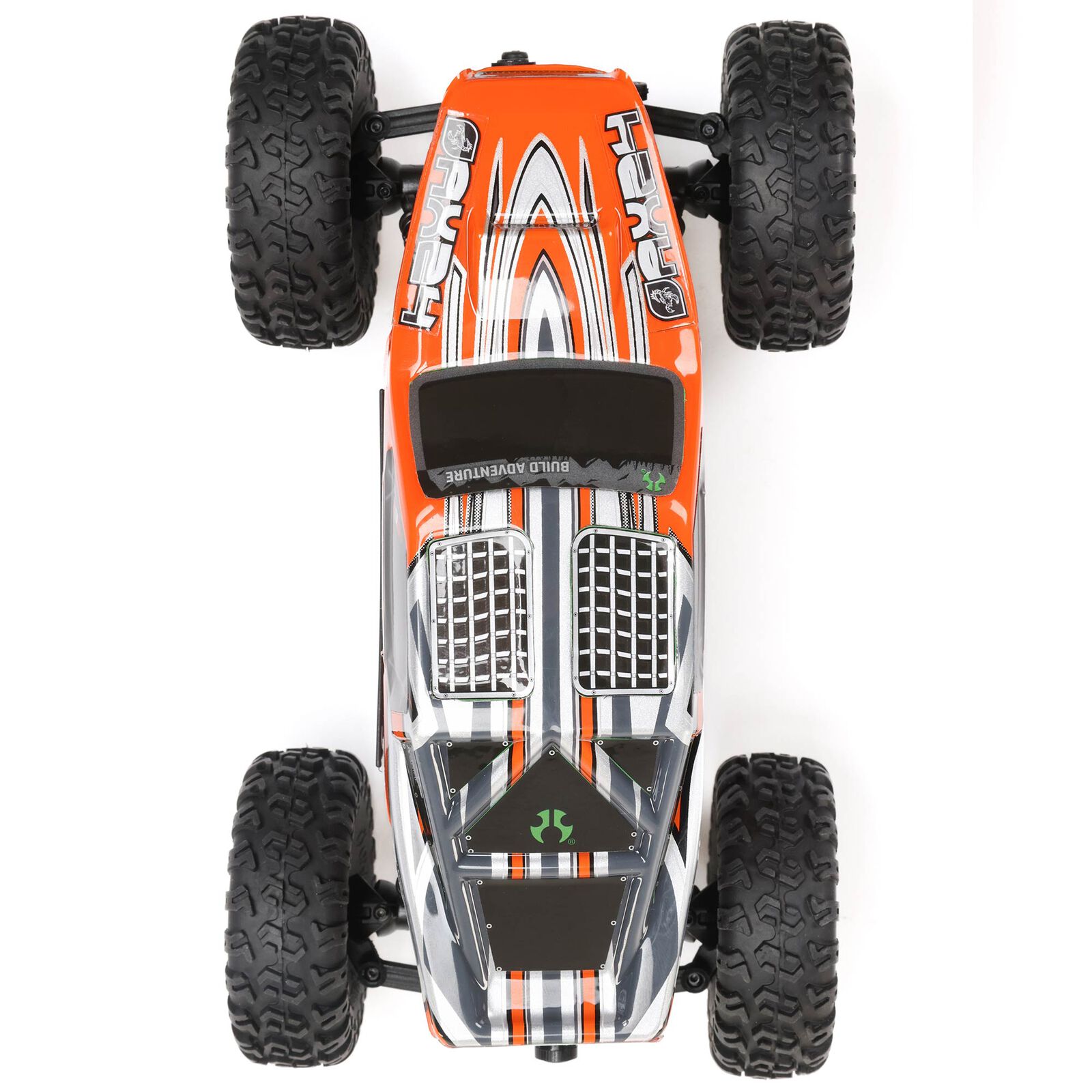 Kicking off the five 100-percent RTR vehicles for under $170 is a scale looking desert race truck, the Arrma Mojave Grom. This very well detailed mini truck comes with four wheel drive that adds to the fun when behind the wheel. The durability of the larger Arrma vehicles is not lost on the Mojave Grom and neither is smooth handling. A strong composite chassis is the backbone of the Mojave and is ventilated to help on-board components keep their cool, aided by a high-speed fan integrated into the electronics. Inside the rugged 4WD drivetrain are robust metal gears which is spun by an Arrma Mega 380 brushed motor. At each corner are dBoots Fortress tires wrapped around plastic composite wheels that are color coordinated with the body. To ensure the Mojave Grom can handle rough terrain, Arrma selected quality oil-filled shocks to soak up bumps and ruts.