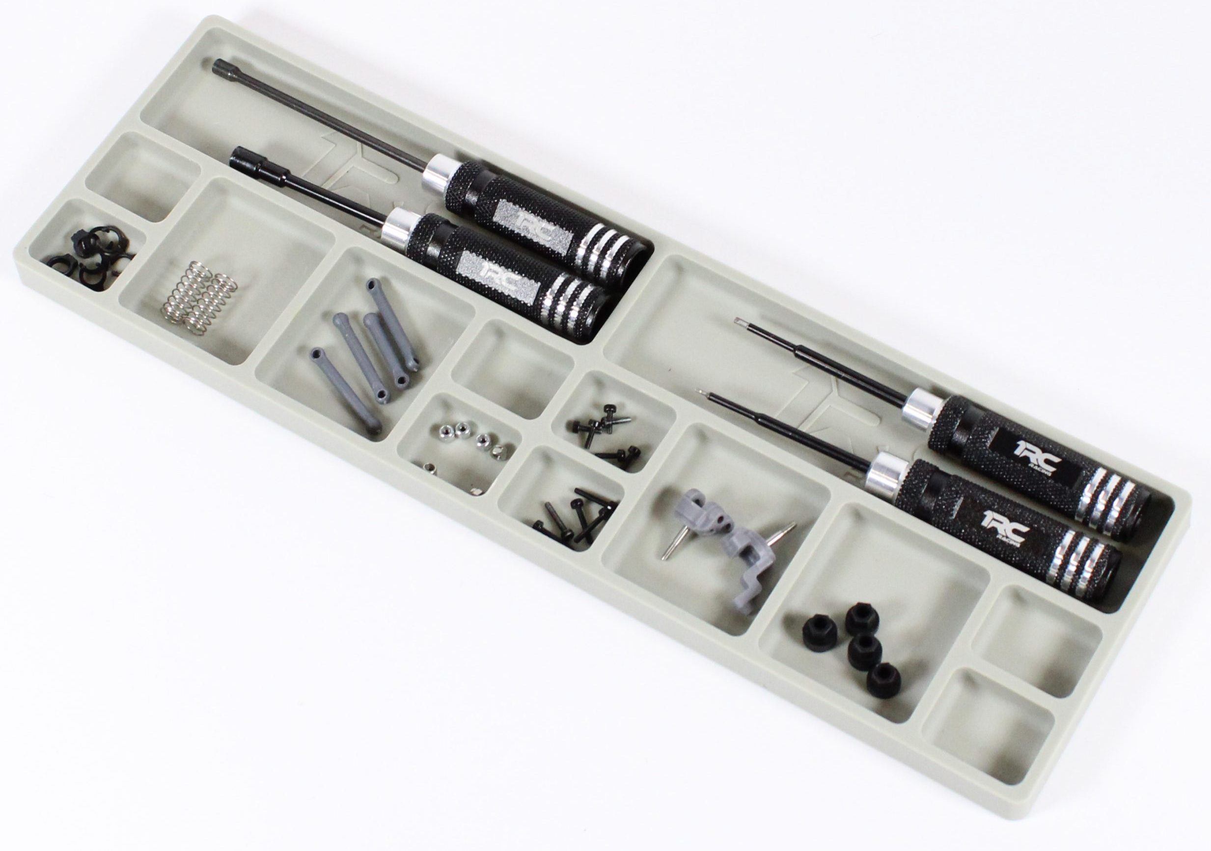 Stay organized while working on your 1RC Racing Cars with the 1RC Racing Pit Tray. Made from molded rubber, this tray features 14 designated areas for holding your hardware and tools, keeping everything conveniently in one place. It’s an essential accessory for any pit setup!