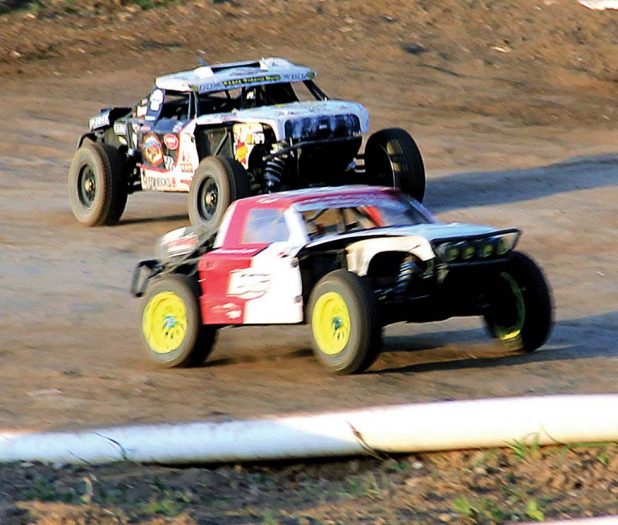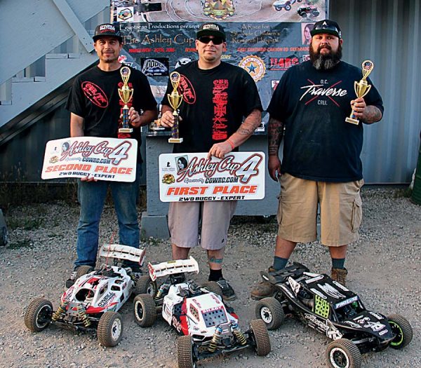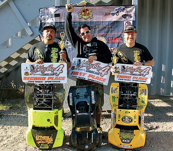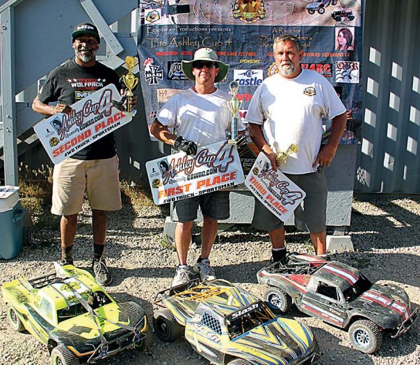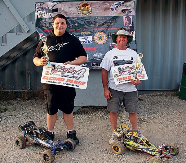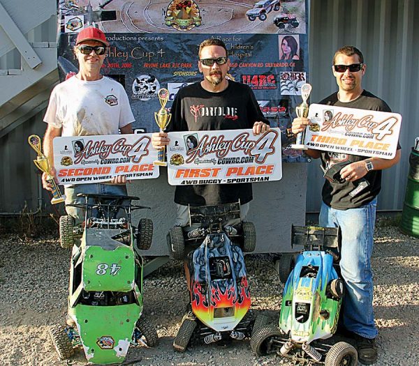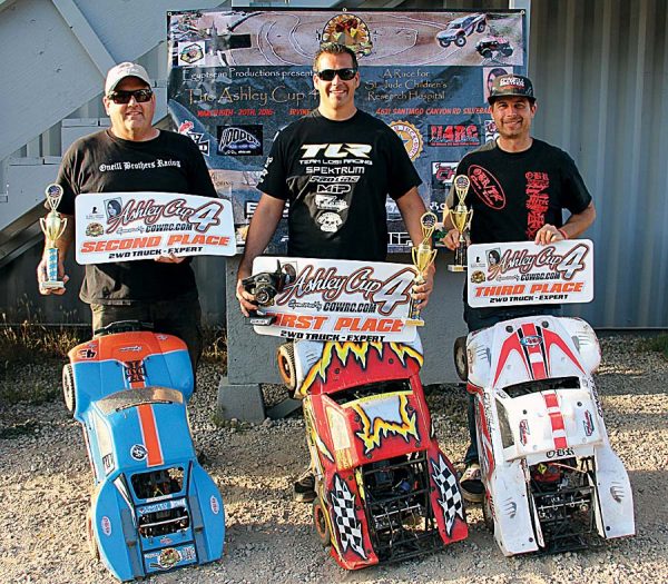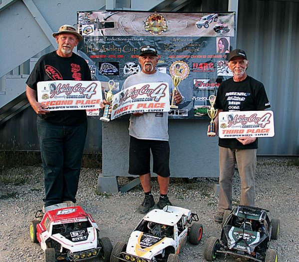 It should be noted with bowed heads and heavy hearts that this was Irvine Lake RC Park’s last event, and they went out in grand style. Craig Narta and his crew of track magicians kept the track groomed, the pipe in place, and the surface watered for all 12 hours of racing. Thank you gents, you will be missed! Consider the full scope of the event. Two separate tracks running simultaneously, side by side. The first track hosted a Rock Racing event sponsored by U4RC and run by Jerry Ellifritz. The second track was bristling with a full schedule of eight 1/5-scale classes and only one day to get it all done! Dave Brown kept the heat on from the driver’s stand, hustling the racers through the busy day and keeping a tight rein on the time and the drivers. There were two qualifiers for each class, with mains following. The day went fast and the racing was furious. Competition was stiff from the start and I was impressed with the good hearted and mutual support the racers exhibited at the event. There is no race like the Ashley Cup, it proves that you can have a great race, with all the driver diversity, compete at the highest level, and make a difference for those with greater challenges by contributing financially to a worthy charity.