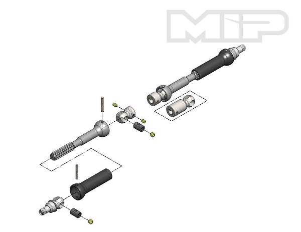 With the extra traction that the new tires will provide, we need to ensure that the drivetrain is up to the challenge. The center drive axles will be the first to notice the strain when taking the power from the motor, so let’s address that. MIP makes an insanely strong center drive kit that will not flex, and more importantly provide extra durability during tough rock crawling sections. These are made from high quality steel, and since MIP been the expert in similar products for decades, you know these are a perfect drop in with no hacking required.