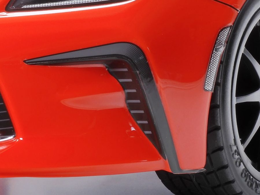 It has a broad stance, low center of gravity and employs aerodynamic components rooted in motorsports. The aluminum hood, roof and front fenders are lightweight and the suspension feature front strut and rear double wishbone systems. A sports car at this performance level is well suited for the Tamiya TT-02 chassis that offers a balanced shaft driven 4WD longitudinal layout. It also gives you excellent stability with the battery positioned on the left of the chassis and the motor, steering servo and speed control mounted on the right. You can read more about the TT-02 chassis in the write-up for the 2020 Ford GT Mk II mentioned above.