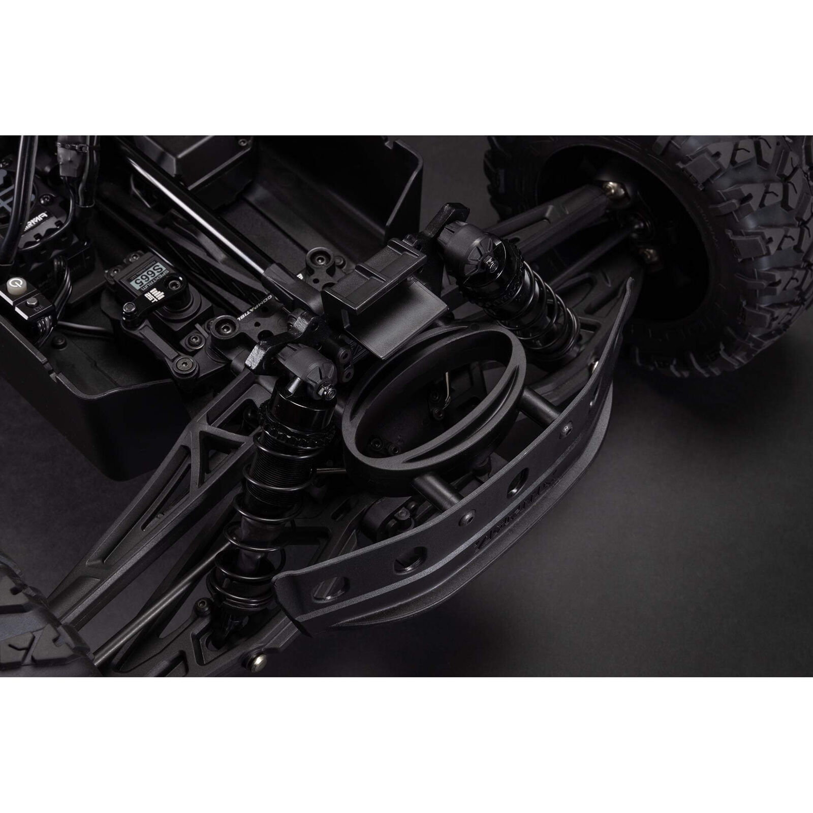 From the reinforced, black-anodized 6061-T6 aluminum chassis to the independent suspension with adjustable, aluminum-bodied, oil-filled shocks, the characteristically durable ARRMA design lets you fearlessly tackle all terrain and all conditions. The metal drivetrain, steel driveshafts, and metal-geared Spektrum S665 digital steering servo all work together to bring out the full bashing potential of 6S brushless power.