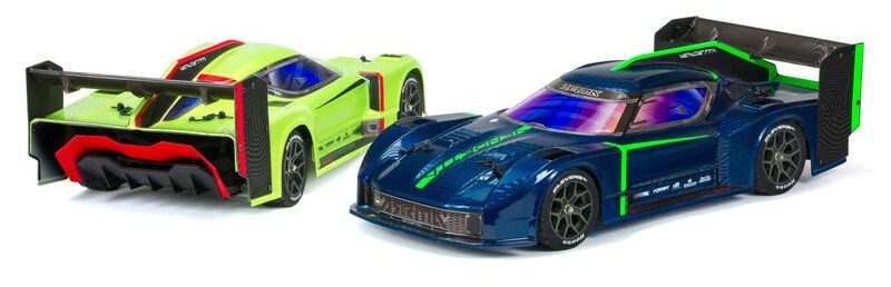 Just announced are the Arrma Vendetta and Infraction 4X4 Mega brushed RTR vehicles. The Arrma Vendetta 4X4 3S BLX brushless all-road speed bash racer is available in either green or blue while the Arrma Infraction 4X4 Mega brushed resto-mod truck comes in either a teal/bronze or red/blue color scheme.