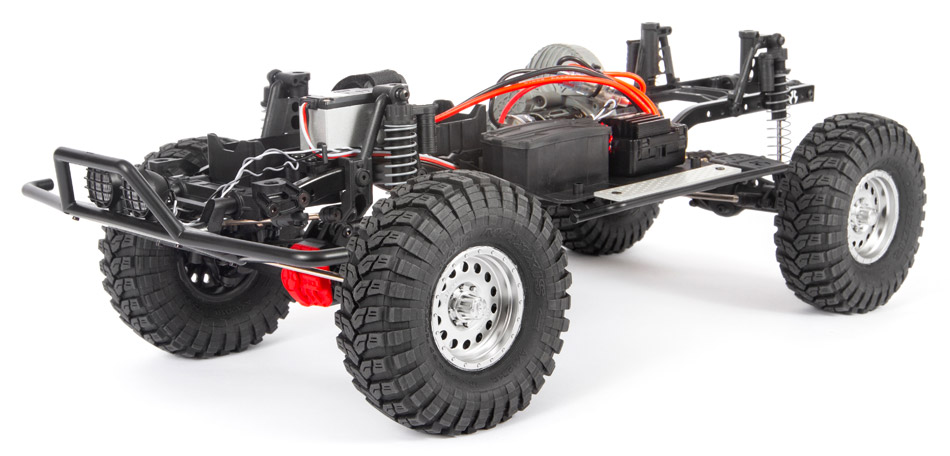 Only batteries and a charger are required. Authentic body details include a front grille with chrome-coated plastic radiator and front-mounted driving lights with LEDs installed. Mounting positions are built-in to add optional LEDs for headlights and turn signal markers. Officially licensed METHOD Hole wheels and Maxxis Trepador tires — plus a working spare — take the realism down to the road.