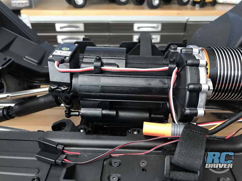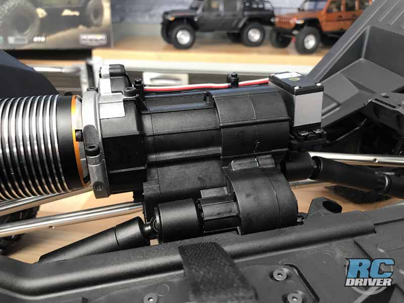 Here’s where we some differences from the SCX6’s little brother. The transmission has been designed from the ground up to be tough and therefore is built with all metal gears inside. The design includes a shiftable two speed with a wide radio so you can seem some big speed changes with a shift. Big Wild Boar axles go down to standard style AR90 axles. Helical metal gears inside should hold up to the torque and weight of the truck. It’s even equipped with universal axles up front. Impressive.