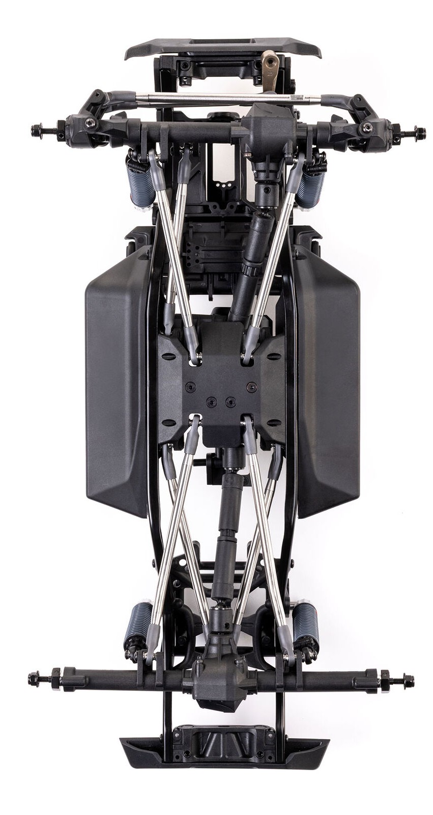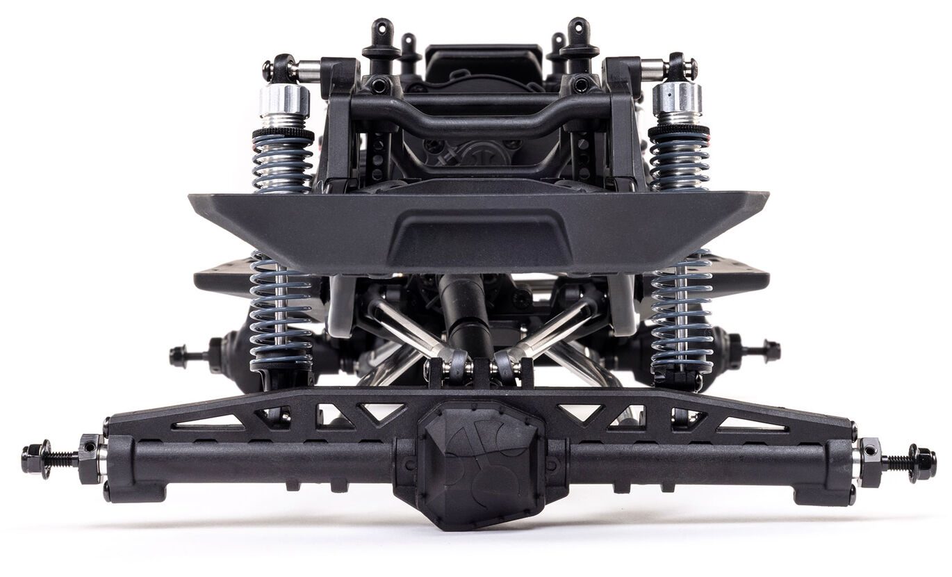 The transmission can be externally locked in standard 4WD, but it also has an optional, servo-actuated DIG feature. The DIG feature lets drivers lock the rear wheels for sharper turns, faster pivots, and better control on difficult terrain. Robust 6mm high-clearance stainless steel links with upgraded rod ends are included, as well as Standard AR45 straight axles. If you prefer portal axles, the LCXU transmission makes it easy to switch with a single gear change.