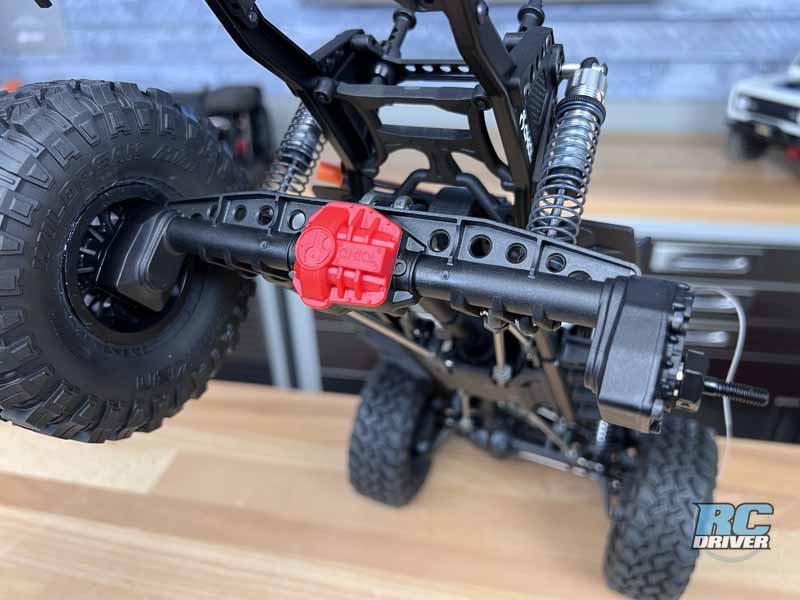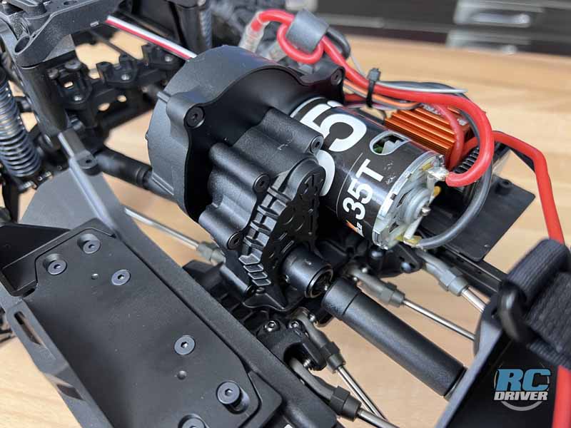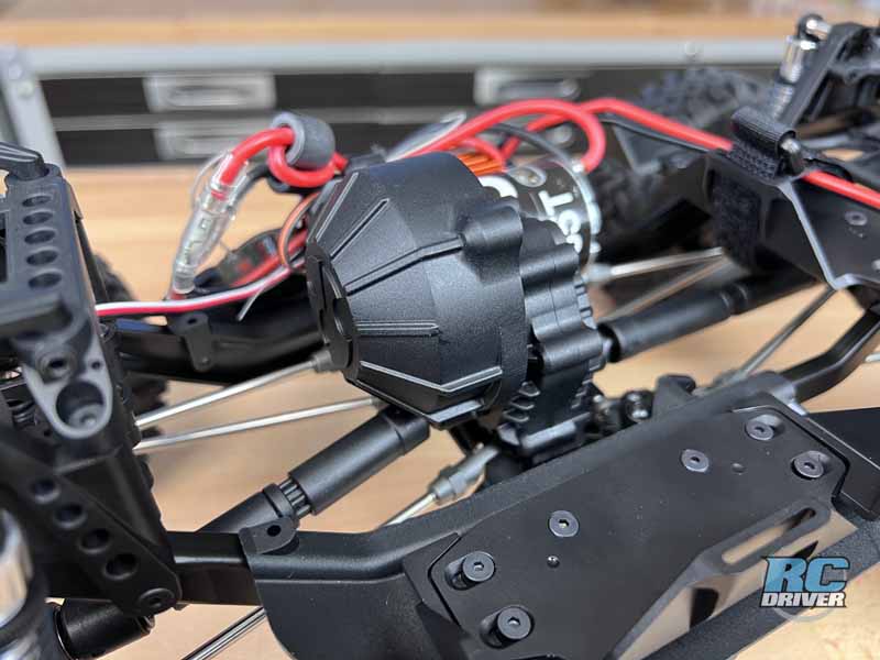 This is where some changes were made. The BC gets the new LCXU single speed transmission. It’s a 5-gear transmission with all metal gears, bearings and the spur gear is locked out. It has an aluminum motor plate and a lower CG compared to other Axial transmissions. This rig still has the portal axles and wild bore driveshafts.