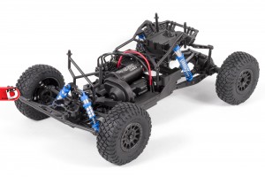SCORE International, the premier world championship desert racing association, was founded in 1973 by the legendary Mickey Thompson. In true Axial style, they’ve brought you a new R/C vehicle replicating desert racing’s top level competition vehicles, the SCORE Trophy Truck utilizing the well proven Yeti chassis with top of the line RTR electronics package. They also partnered with the top companies actively developing their products through desert racing to take authenticity to the next level. The Axial SCORE Trophy Truck is suspended by a set of aluminum King Shocks rocking the iconic blue shock caps, rod ends, ride height adjusters and springs.