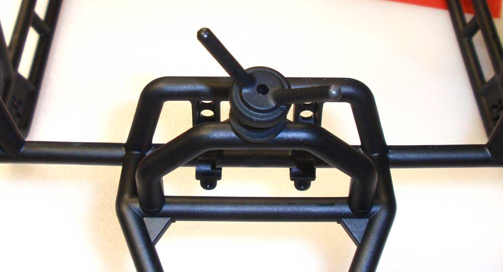 Let’s start off by assembling the cage. I didnt’ go into detail with this because it’s pretty simple, just pay close attention to the screws. My manual had a few mistakes; first off, in the sidebar is shows the top screw (shorter screw) with a quantity of 8 and being 25mm. The bottom screw (longer screw) has a quantity of 16 with a length of 20mm. This didn’t throw me as much as did the actually quantities and placement. On the lower build pictures, the manual has us installing a pair of the AXA437 screws (25mm) into the rear brace, but in fact the shorter ones are needed here (they longer ones don’t go in all the way). I had to move some screws around to accomodate this, but I’m sure you’ll get the picture when you’re building the cage … or maybe your manual has been updated. Just be aware that you may need to move some screws around.