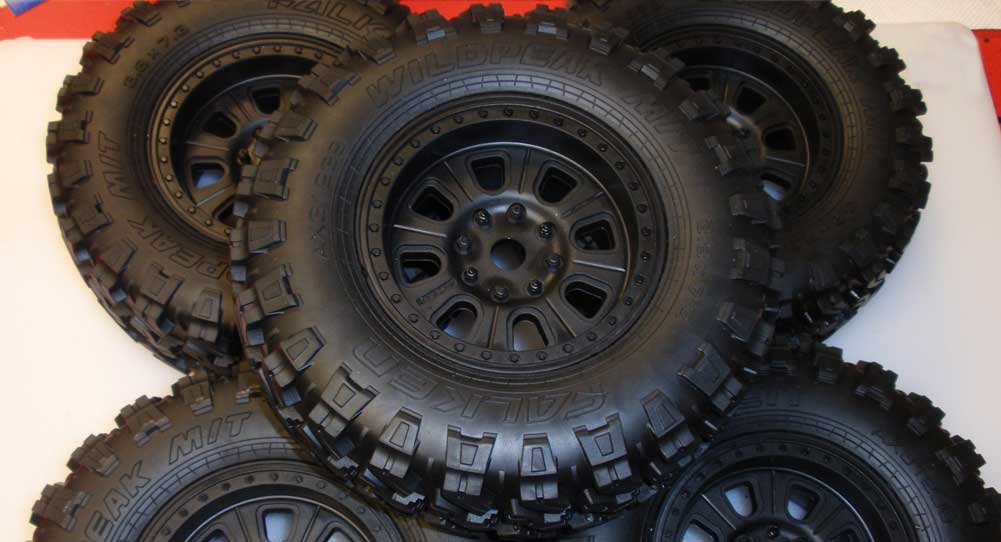 Install the wheels into the tires, making sure the tire bead seats completely into the wheels. Use your favorite CA glue to mount them all up.