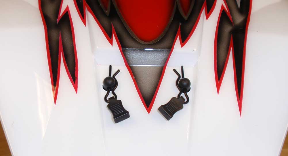 Slide the rubbery clip-pulls onto the body clips, ‘close’ the cage and insert.