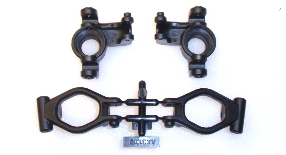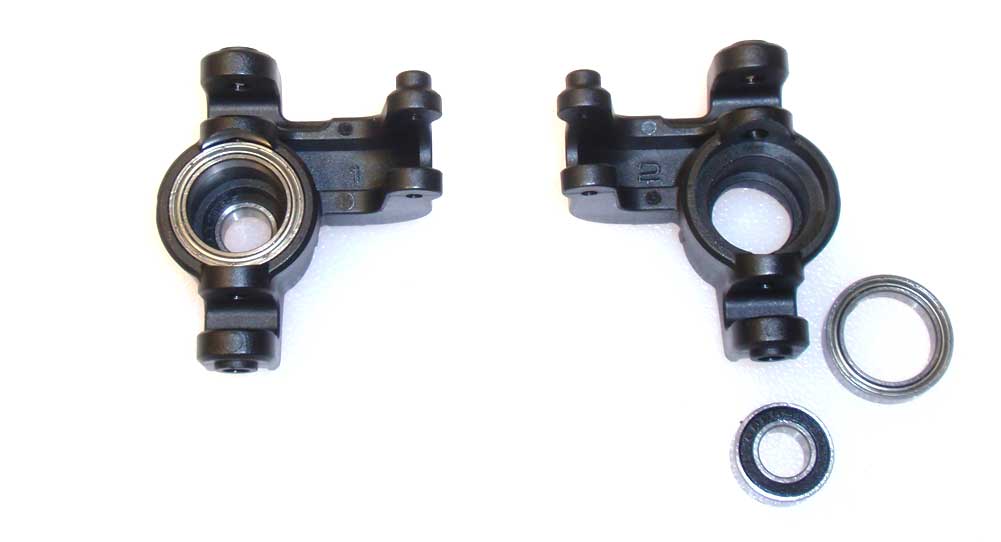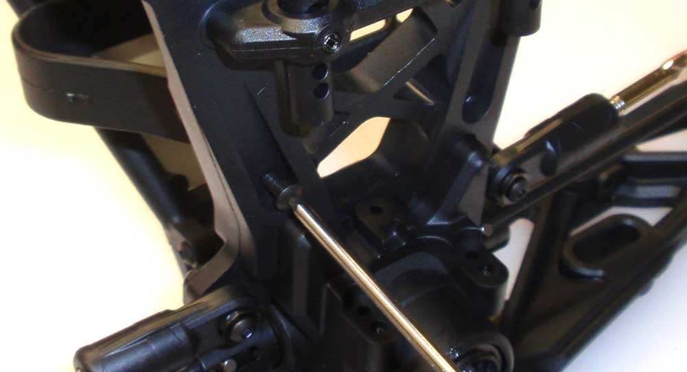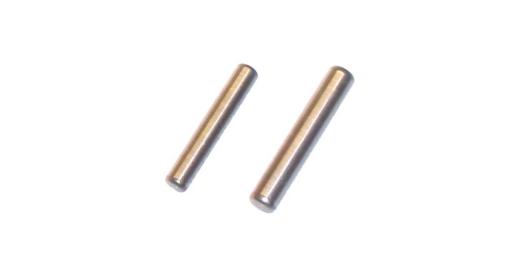 The front suspension utilizes two different size pins; the thinner one on the left is for the CVDs, the thicker one on the right is for the wheel hexes.