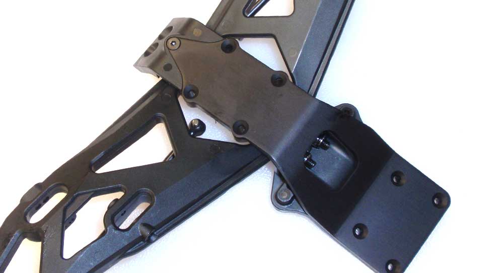 Flip the front assembly over and attach the skid plate using the front-most M3 screw. This step requires a few extra hands but I found if you attach the plate first, it gets alot easier.