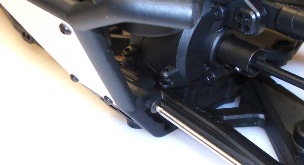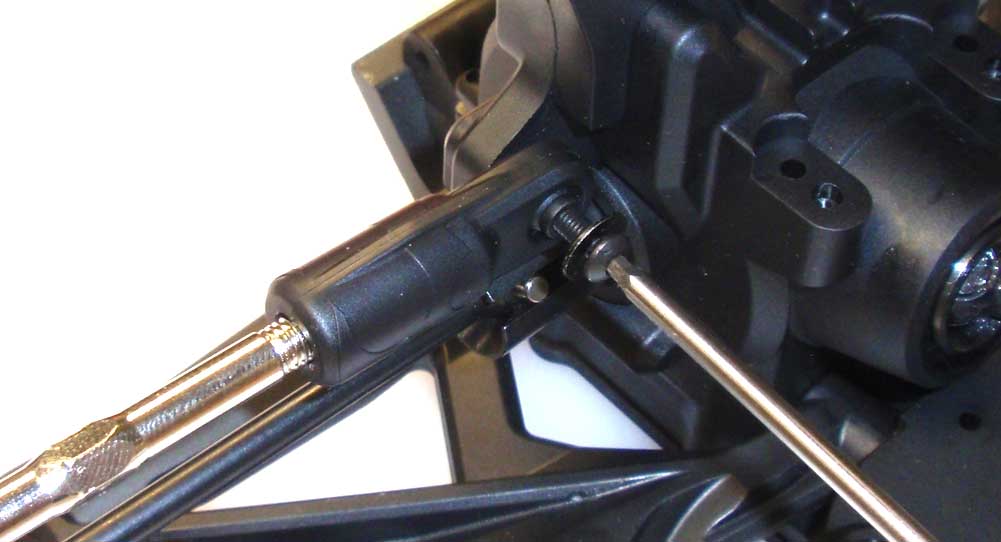 Key the CVD to the diff outdrive and then connect the other end of the turnbuckle to the upper/outside hole on the tower. Complete both sides.
