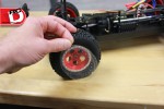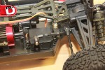 Bulky steering knuckles support large bearings and the aluminum hex hubs are 12mm. Steel dogbones transfer the power to the wheels.