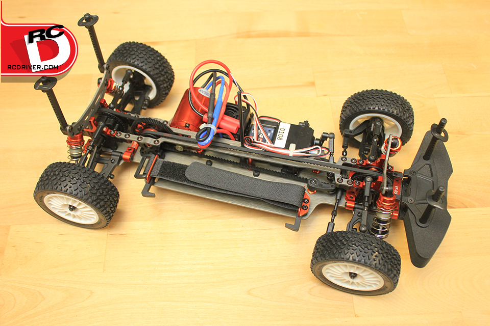 At a seemingly rapid rate, the Basher line from Hobbyking is expanding their offerings and one of their latest releases has just hit the RC Driver Reveal workbench for an unboxing, the RZ-4. This new car has lots of great features and for the price tag we’re surprised you get so many aluminum goodies. The RZ-4 has a TC style stance with an aluminum chassis, upper deck and shock towers as standard equipment. The cool stuff doesn’t end there. The car also has aluminum suspension pivot blocks, motor plate and wheel hexes all anodized orange. The drivetrain is belt which has us a little concerned since it does open up the possibility of grime fouling the belts but some test time will show how it fares soon. The shocks are oil filled aluminum units with threaded collars for preload. The chassis is stuffed with a brushless system consisting of a 3300Kv motor and 50A esc. A 2.4gHz radio system with standard servo completes the included electronics and the battery tray is ready to have a LiPo velcro strapped in for power. We’re looking forward to testing this rally car out anywhere and everywhere. Check out the review in an upcoming issue of RC Driver Magazine.