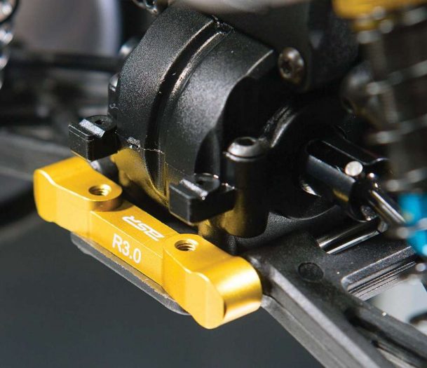 • Keeping with the theme of fully upgraded out of the box, the BZ-444 gets front and rear ball differentials, CVD’s on all four corners and in the center driveline as well as an aluminum adjustable motor mount. The driveline is of course, ball bearing supported and after removing the motor for a driveline check, I was pleased to see everything spin smooth and free. The differentials were also well built from the factory and did not require any adjustments.