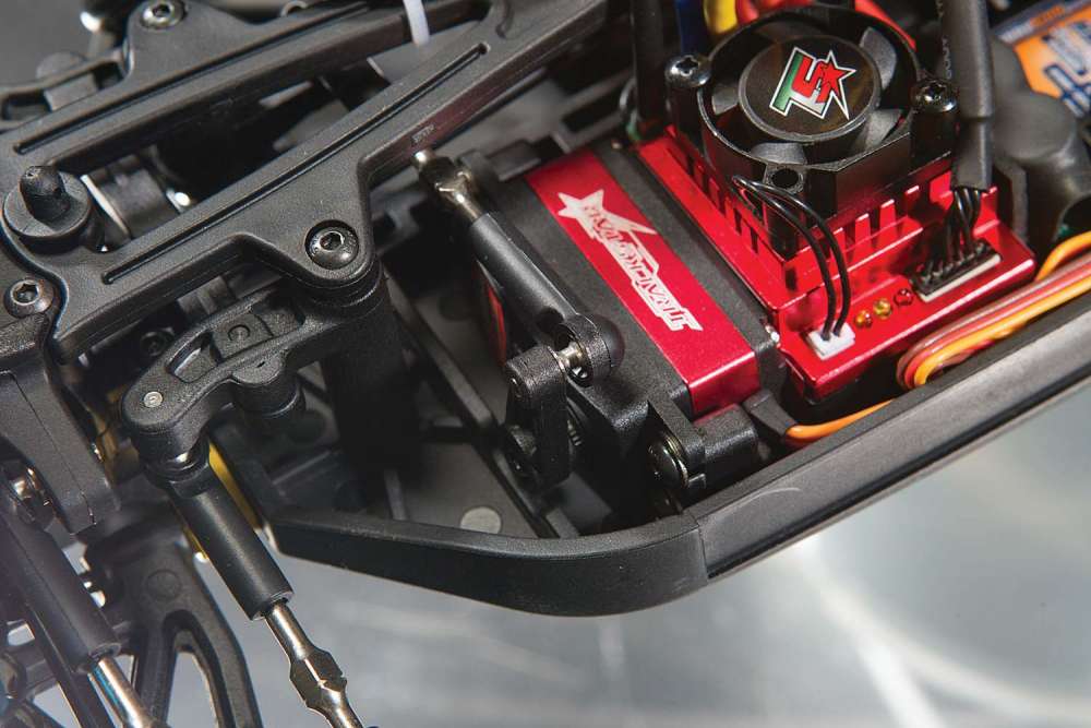 • No shortcuts were taken in the steering department. A TrackStar TS-D99X super high- speed steering servo is included with the RTR and ARR versions of the buggy. Steering on the buggy is further handled by a standard dual bell crank system with an adjustable servo saver on the right side.