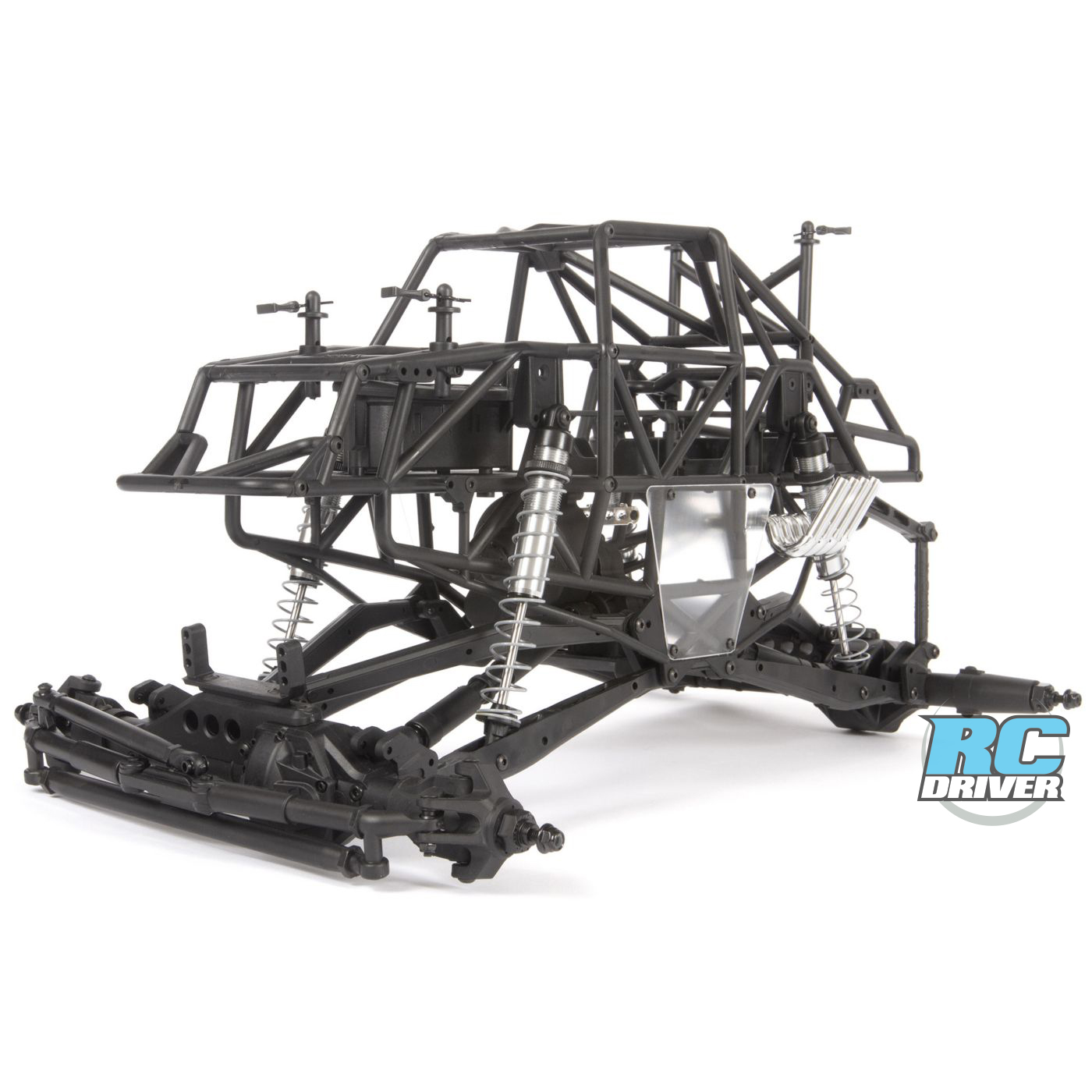 The crew at Axial Racing excited crawler fans a while back with an SCX10 II Raw Builders kit, where builders could assemble and outfit the rig with parts they wanted versus what was included in an RTR. Well it looks like Axial is expanding on that concept and is now offering the SMT10 Monster Truck Raw Builders Kit. This will allow RC Monster Truck fans to outfit the truck with the body, wheels, tires and electronics of their choice. The 1/10 scale Monster Truck RAW Builder’s Kit is centered on the SMT10™ tube frame 4WD chassis, which was developed for maximum bashing strength and an extremely detailed appearance. It’s very similar to those used in full-size monster trucks. That’s why the chassis excels at hard-core action over grass, gravel, pavement and asphalt tracks.The AX10™ transmission included with the SMT10™ Monster Truck RAW Builder’s Kit is designed to make the most of your motor’s power. Its Dual Pad slipper system features a pad on each side of the spur gear to increase surface area, resulting in improved tuning precision and holding ability. Strong 32-pitch gearing enhances performance in high-torque applications.