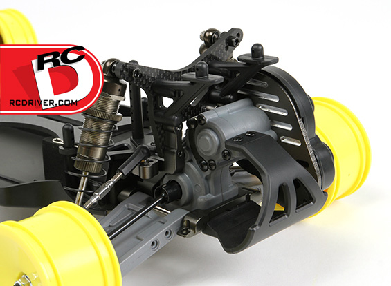 The center-line battery tray will fit most standard hard case LiPoly batteries and still leaves plenty of room for all your other electronics, there is even enough room to mount the ESC on the battery retainer plate to keep all your weight centered. With the right spacers, the chassis will even accept “shorty” race packs. There is a steering servo saver included as part of the standard kit and adding to the durability is the unique belt drive system that has been tweaked to remove the issue of binding some racers experinced with the original. The belt adds a small amount of give to the system, which helps reduce shock to your gears and motor.