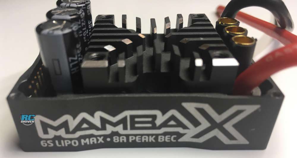 VITAL STATS MANUFACTURER: Castle Creations PRODUCT: Mamba X PART NUMBER: 010-0155-00 PRICE: $137.99 INPUT VOLTAGE 2-6S LiPo MOTOR TYPES: Sensored, sensorless and brushed DATA LOGGING CAPABLE: Yes AUXILARY WIRE: Yes BATTERY WIRES: 12AWG FOOTPRINT: Length: 2.14″ (54.4mm), Width: 1.39″ (35.2mm), Height: 1.18″ (30.0mm) COOLING FAN SIZE: 30mm ESC WEIGHT WITH WIRES: 3.56 oz. (101g) BEC: User selectable output of 5.5V, 6.0V, 7.5V. or 8.0V (8A peak) CURRENT: 120A continuous DIRECTION: Forward, brake and reverse with optional reverse lock-out for racing BATTERY CONNECTOR: Not included