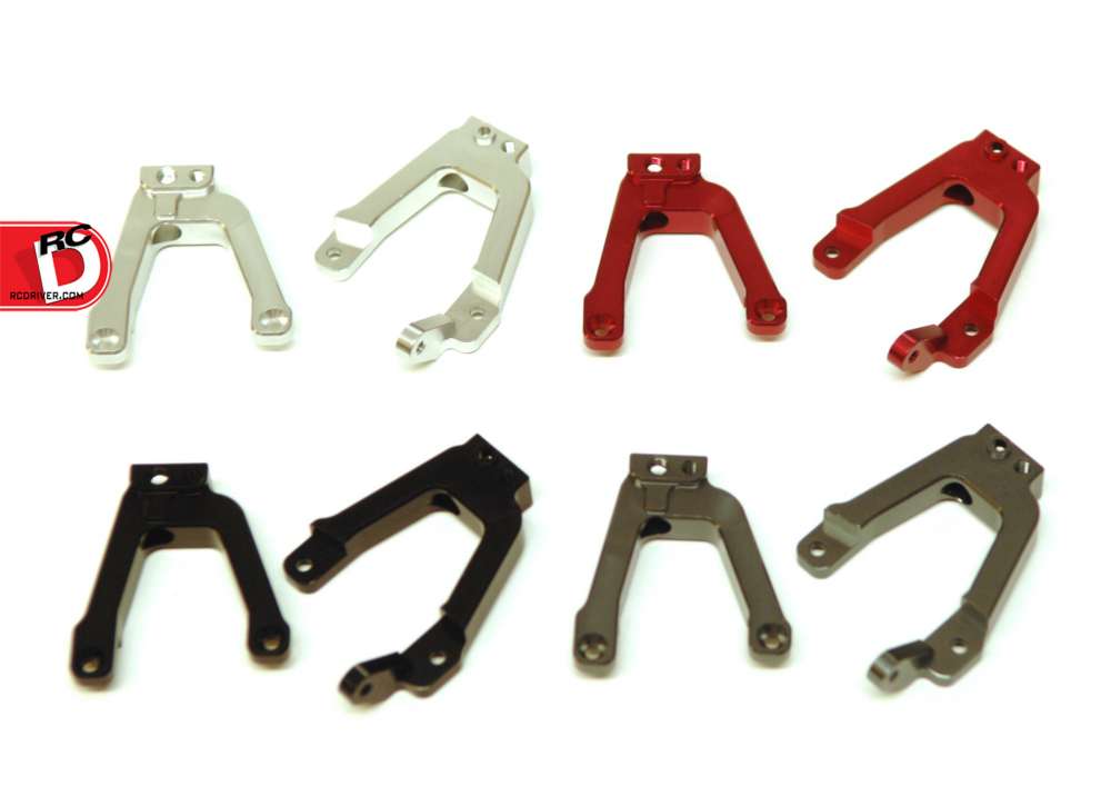STRC now offers CNC Machined Aluminum heavy duty front and rear shock towers and servo mounts, The front shock tower features heavy duty design that incorporates the front Panhard link mount in the exact location as the stock plastic piece. The rear shock tower features the same beefy design that eliminates any flex and also keeps the body posts firmly in place. The front servo mount features a two piece design that bolts to the stock battery tray and “keys” into the C-channel chassis rail. Available in black, gun metal, red, and silver.