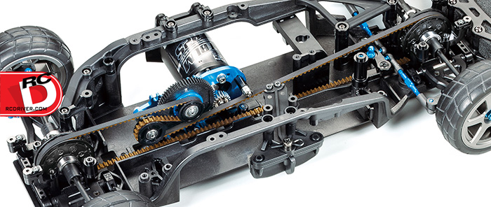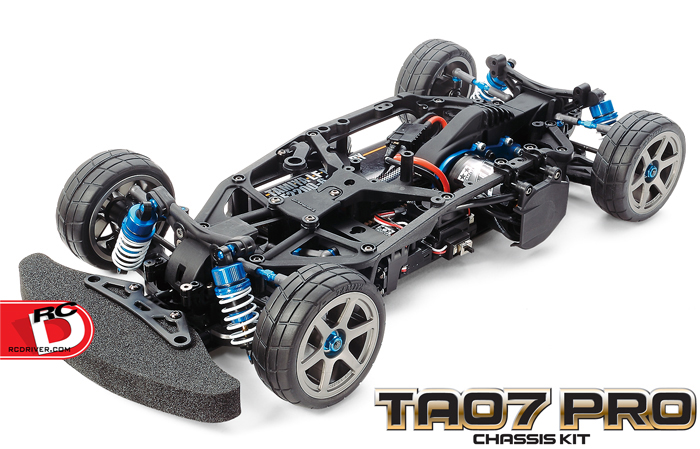 The TA07 PRO Chassis Kit from Tamiya features a highly efficient single belt drivetrain that offers 3 motor positions, each with its own performance characteristics. Switching between them requires simple tension adjustments rather than exchanging belts. It uses TRF419 suspension, gear differential units and steering components that are joined by TRF dampers and universal shafts to make this chassis a hi-spec racer. It features many aluminum bits anodized in Tamiya blue for an eye catching look.