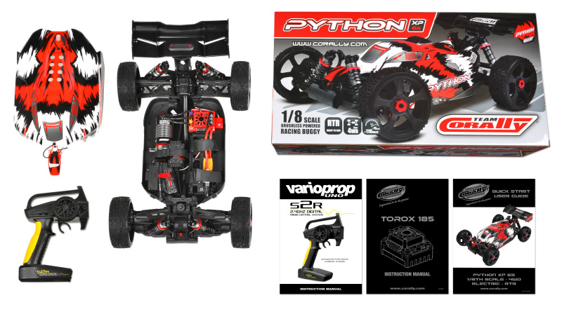 • Corally Python XP 6S 1/8-scale Racing BuggyTeam Corally TOROX 185 ESC 2-6S with LiPo low-voltage protection (programmable)