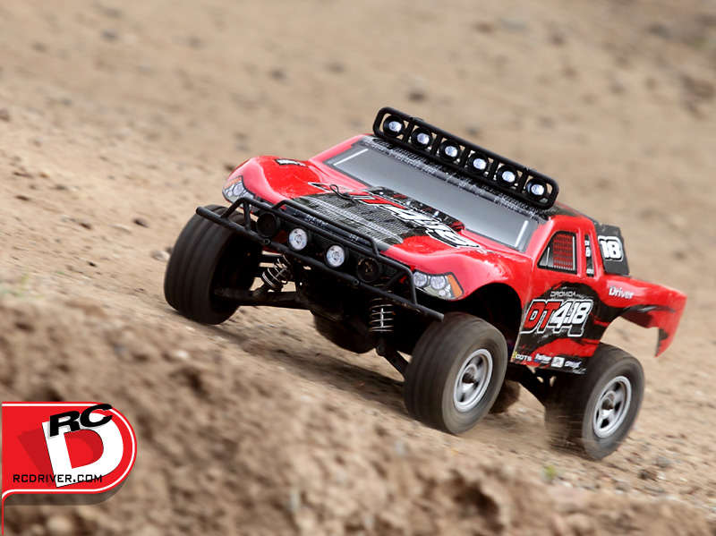 Greg’s Opinion: After driving each of the Dromida 4.18BL Speed Series vehicles, I managed to pick out a favorite from the bunch; the DT4.18BL. The truck has a wide stance with its desert style tires and rims and I feel it gave it a performance edge over the others in stability. In my opinion the DT looks killer too with its light bar and spare tire out back. But the real attraction here is the brushless system, this is one mighty mini!