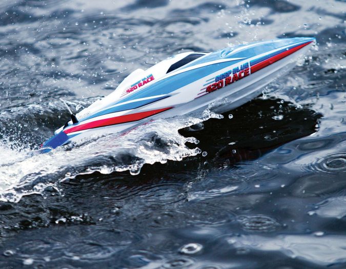 There is no doubt that the world of radio control boats can be tough to break into compared to our land- based counterparts. If our four-wheeled vehicle flips over or has an electronic failure, we just walk over and get back up and running right away. With boats you can’t really do that… or can you? The LRP Deep Blue 420 Race is an RTR boat that has the capability of righting itself when flipped over and comes equipped with some of the most reliable electronics on the market. Couple the reliability and ease of use with a blistering fast performance and you have a recipe for one hot RTR speedboat you can enjoy regardless of your skill level.
