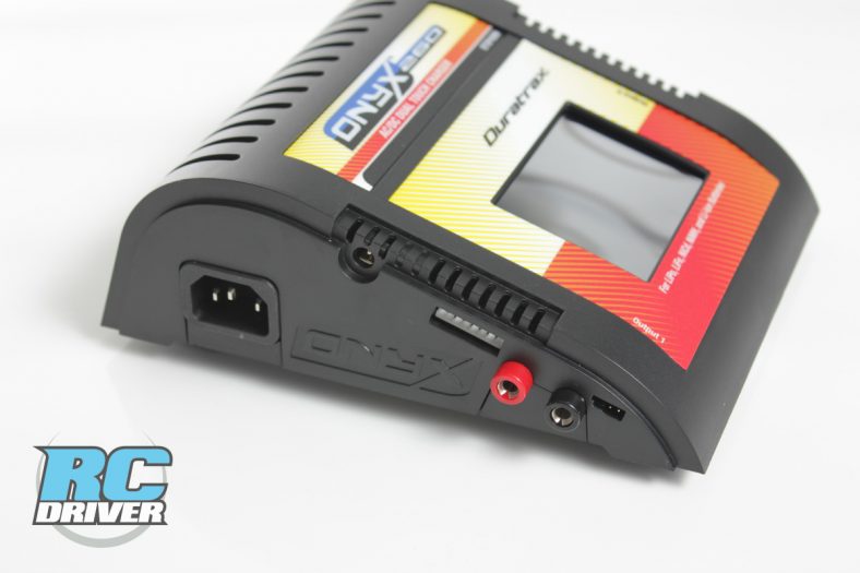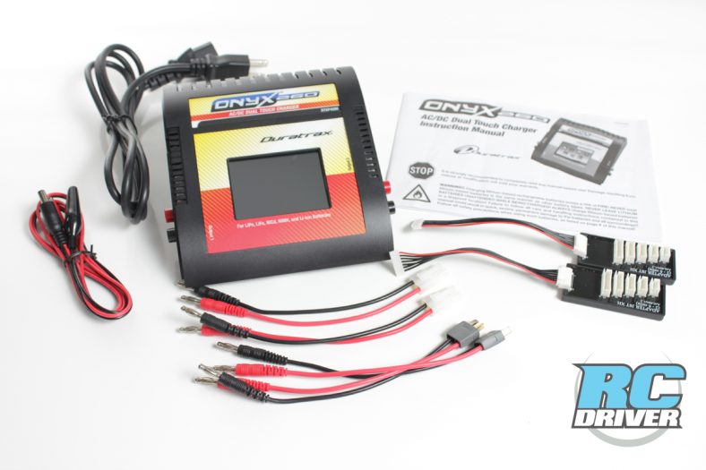 VITAL STATS MANUFACTURER: Duratrax PRODUCT: Onyx 260 AC/DC Dual Touch Balancing Charger PART NUMBER: DTXP4260 PRICE: From $149.99 COMPATIABLE CELL TYPES: NiCd/MiMH 1-15 cells, LiPo, LiFe, Li-Ion 1-6 cells CHARGE RATE: .1 – 6.0A per channel BALANCE CURRENT DRAIN: 300mAh per cell BALANCING BOARDS: JST XH connector BALANCING ACCURACY: 5 mV per cell OUTPUTS: Star Plug (2), Tamiya plug (2) and 4-, 5- & 8-C NiCds, NiMHs and universal radio CHARGING CAPACITY: 100mAh to 60,000mAh SAFTEY TIMER: 0 to 300 minutes (adjustable) USER MEMORY: 10 profiles per channel (20 total) SCREEN SIZE: Full color 3.2″ touch screen CHARGER WEIGHT: 18.8oz (5533g) CHARGER DIMENTIONS: 6.0″ x 2.75″ x 7.25″ (152mm x 70mm x 184mm)