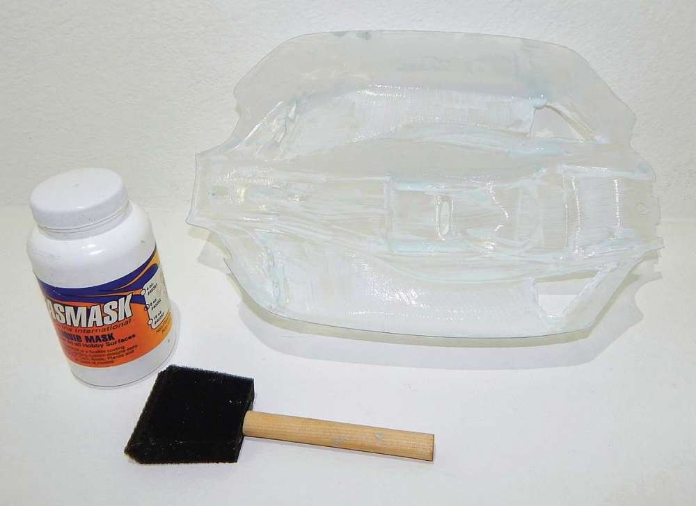 2 Regular readers of this column might get tired of seeing this step, but for those just tuning in, I gotta do it! After the body has been test fitted and is ready to go, I give it good scrubbing with dish soap and warm water to remove any residual oils. I was going to be using liquid mask so I laid a couple of thick coats with a foam brush, allowing a couple of hours between coats and overnight for the final coat. It is always better to lay it too thick rather than too thin, as it will be easier to peel off. A fan or blow dryer can help speed the drying process.